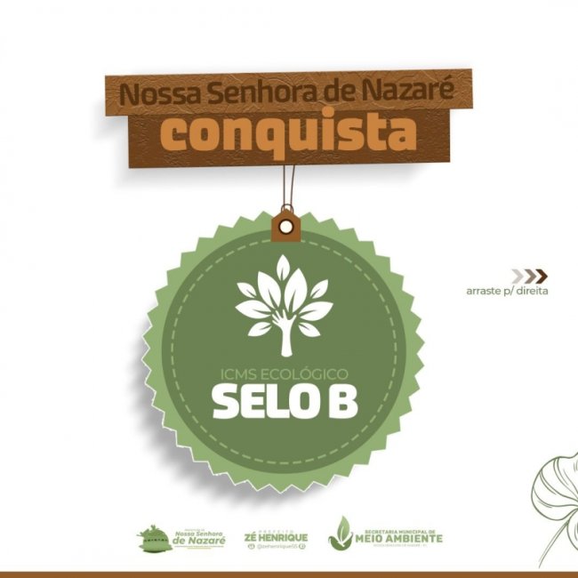 O Município de Nossa Senhora de Nazaré (PI) conquistou pela primeira vez o Selo Ambiental do ICMS Ecológico concedido pela Secretaria de Estado do Meio Ambiente e Recursos Hídricos aos municípios que se destacam na preservação do meio ambiente.