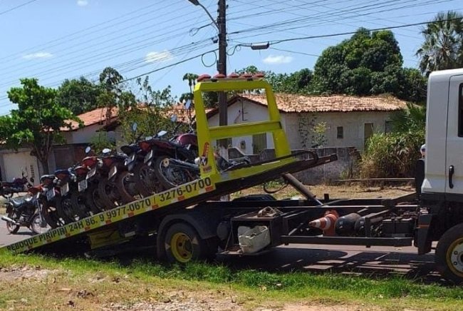 Foi necessário a utilização de dois caminhões de reboque para encaminhar as motos apreendidas para o posto da PRF no município de Piripiri.