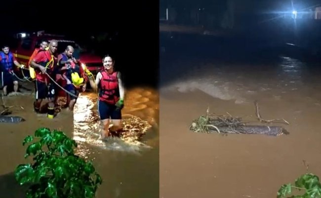 Família é resgatada por bombeiros após riacho transbordar em Capitão de Campos