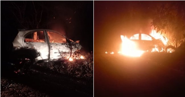 Carro pega fogo após casal sofrer acidente no Norte do Piauí