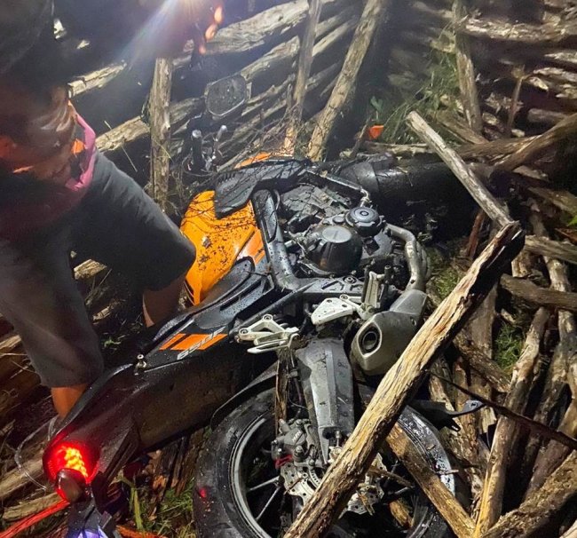 Na tarde desta sexta-feira (07/04), um grave acidente de moto ocorreu na PI 211, próximo da localidade Quatrocentas, na grande região do povoado Lagoa Seca, no município de Esperantina. O condutor da moto, identificado apenas como Natan, perdeu o controle do veículo ao passar por um quebra-molas na rodovia, vindo a se desequilibrar e colidir com força contra o solo. Devido ao impacto, a motocicleta foi arremessada para dentro de um curral.