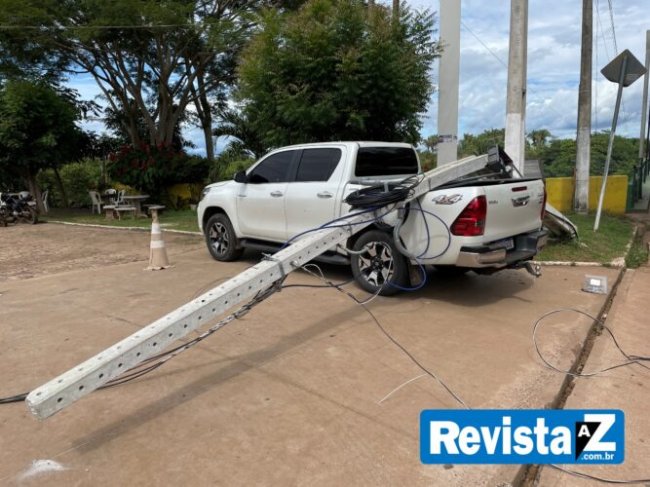 A reportagem apurou que o caminhão, pertencente a empresa Agrocampo, arrastou a fiação ao acessar o posto de combustível e puxou o poste que caiu por cima do veículo que estava estacionado. Apesar do susto, não houve feridos.