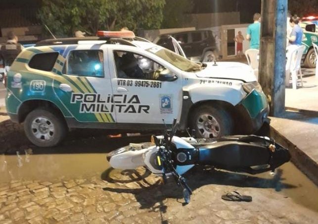 Uma viatura da Polícia Militar se envolveu em acidente durante a prisão de um suspeito de roubo na cidade de Altos, interior do Piauí, na noite dessa quarta-feira (16).