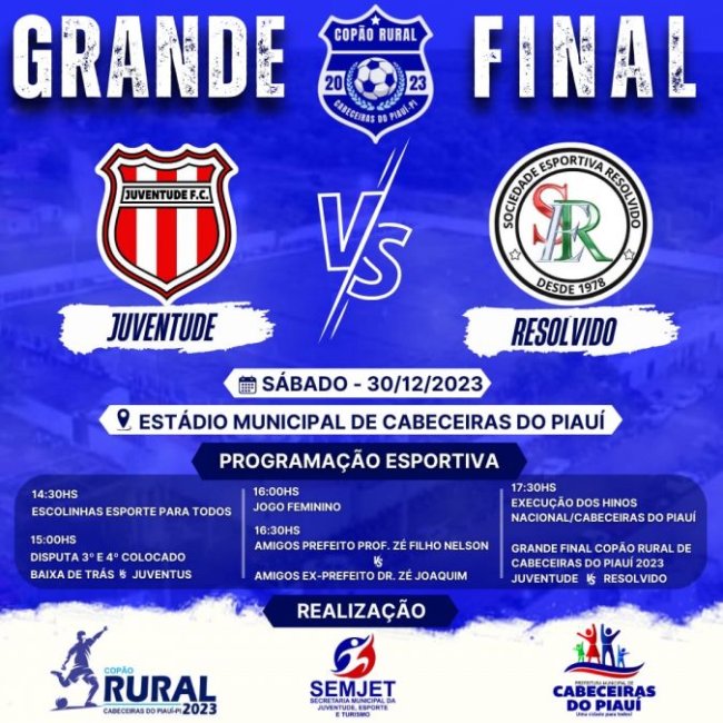 A Prefeitura de Cabeceiras realiza neste sábado (30), a final do Copão Rural 2023.