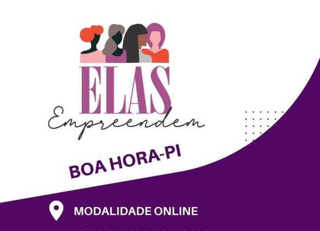 A Secretaria das Mulheres do Piauí (Sempi) está com inscrições abertas para uma turma do projeto "Ei Mermã, Elas Empreendem" no município de Boa Hora. As aulas estão marcadas para iniciarem no dia 19 de fevereiro com término previsto para 1º de março, oferecendo capacitação, exclusivamente, on-line, das 14h às 18h.