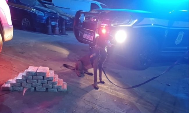 Os policiais desconfiaram da conversa desconexa do condutor , e com ajuda de cães farejadores, encontraram, em fundos falsos no interior do veículo, a droga que estava envolvida em plásticos em forma de tabletes.