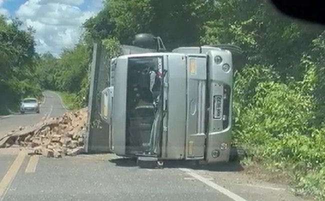 Na manhã desta quinta-feira (6), um caminhão caçamba tombou na BR-222, próximo à ladeira do Aposento, na zona rural de Batalha. O veículo transportava pedras com destino a Boqueirão do Piauí quando ocorreu o acidente.