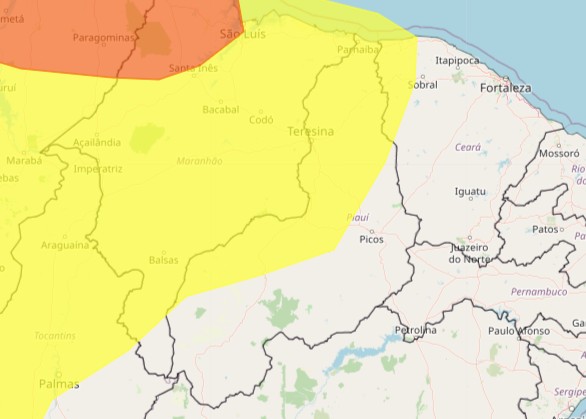 Um alerta amarelo de possibilidade de chuvas intensas para a região Centro, Norte e Litoral do Piauí foi publicado pelo Instituto Nacional de Meteorologia (Inmet) nesta sexta-feira (21). A capital piauiense está sob o alerta.