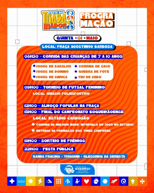 A Prefeitura de Boqueirão do Piauí divulgou a programação da Tradicional Festa do Trabalhador que acontece no dia 1º de maio no município.