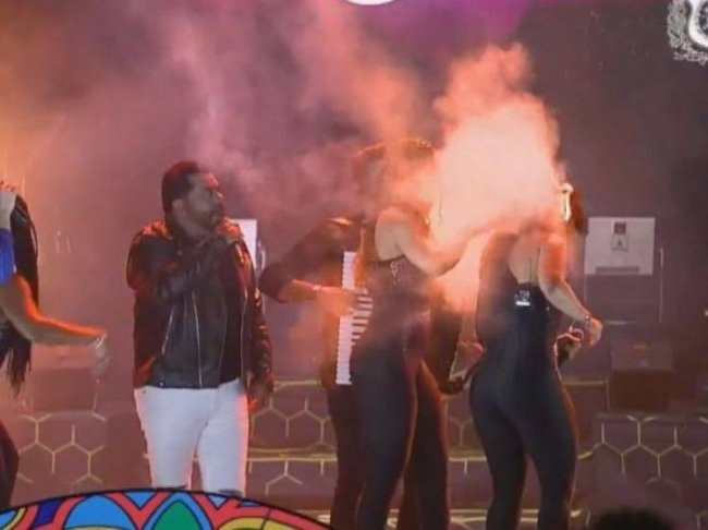 Nas imagens divulgadas nas redes sociais é possível ver o momento em que as chamas atingem o cabelo da cantora. Em seguida, os integrantes do banda tentam prestar socorro e a retiram do palco.