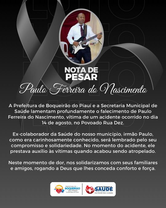 A Prefeitura de Boqueirão do Piauí e a Secretaria Municipal de Saúde manifestaram profundo pesar pelo ocorrido, destacando a solidariedade e a dedicação de Paulo Ferreira à comunidade em nota publicada nas redes sociais.