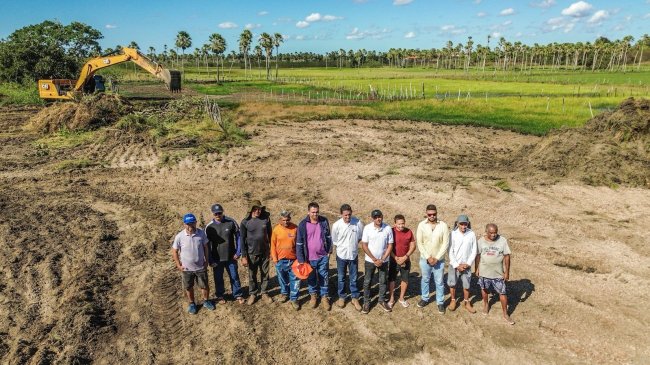 O prefeito professor Zé Filho acompanhou o início dos trabalhos, ao lado do engenheiro responsável pelo projeto e de lideranças políticas locais.