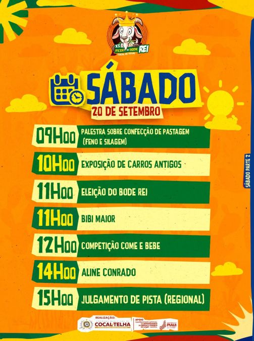 A XI Feira do Bode Rei, em Cocal de Telha, acontece nos dias 18, 19 e 20 de setembro e chega em 2025 com uma edição ainda maior e mais diversificada. O evento, já tradicional na cidade, reúne cultura, exposições e atividades ligadas ao agronegócio, atraindo moradores e visitantes da região.