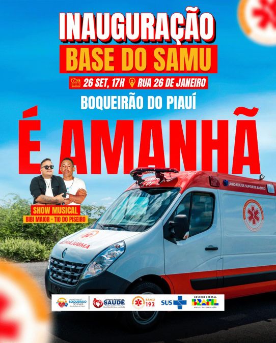O município de Boqueirão do Piauí inaugura nesta sexta-feira (26), às 17h, a sua Base Descentralizada do Serviço de Atendimento Móvel de Urgência (SAMU 192). A entrega representa uma conquista histórica e coloca a cidade na dianteira na região dos Carnaubais, tornando-se referência no atendimento de urgência e emergência.