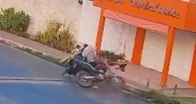 Com o impacto da batida, a mulher, a criança que estava à sua frente na moto e o motociclista caíram ao chão. A criança bateu a cabeça durante a queda.