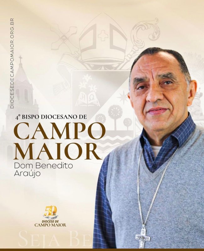 A posse do novo bispo da Diocese de Campo Maior, Dom Benedito Araújo, será realizada no dia 17 de janeiro de 2026. A data foi definida em acordo entre a Diocese e o próprio bispo.