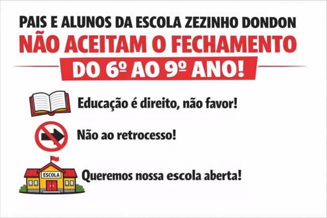 No comunicado, a gestão municipal afirma que o fechamento das escolas noticiado por pais e responsáveis não é definitivo. Segundo a Prefeitura, as unidades mencionadas permanecem em funcionamento e deverão ofertar aulas no turno noturno por meio da modalidade Educação de Jovens e Adultos (EJA).