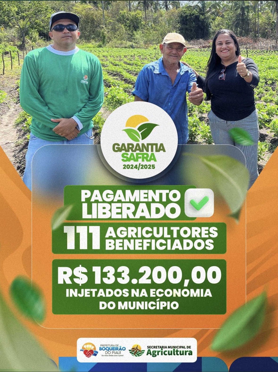 A Prefeitura de Boqueirão do Piauí anunciou nesta quinta-feira (18) o pagamento do Garantia Safra referente ao ciclo 2024/2025.