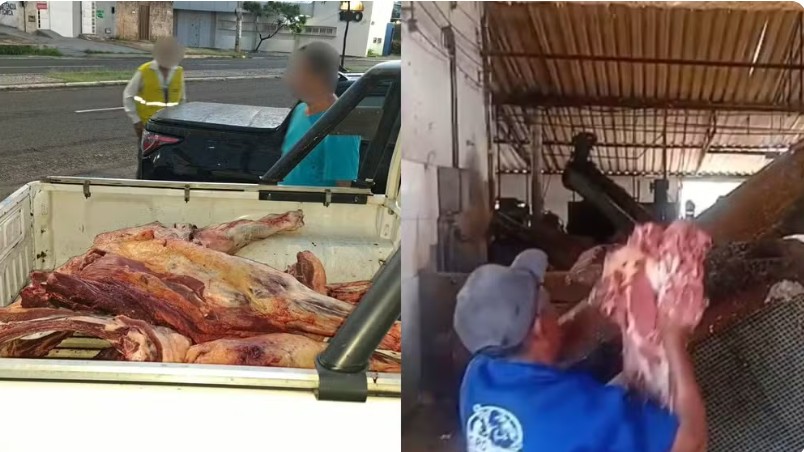 Durante a ação, foram apreendidos quatro quartos bovinos (cerca de 230 kg) que não apresentavam carimbo de inspeção sanitária, o que indica ausência de controle oficial sobre a procedência da carne.