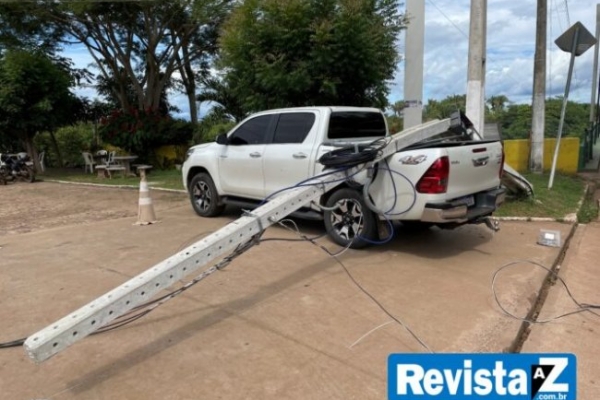 Caminhão arrasta fios e derruba porte sobre carro em cidade da região norte