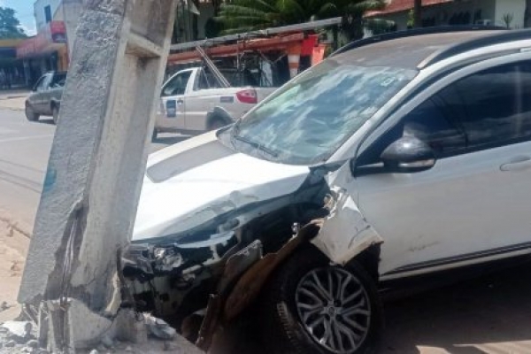 Mulher com crianças perde controle de carro e bate em poste em cidade da região norte do Piauí