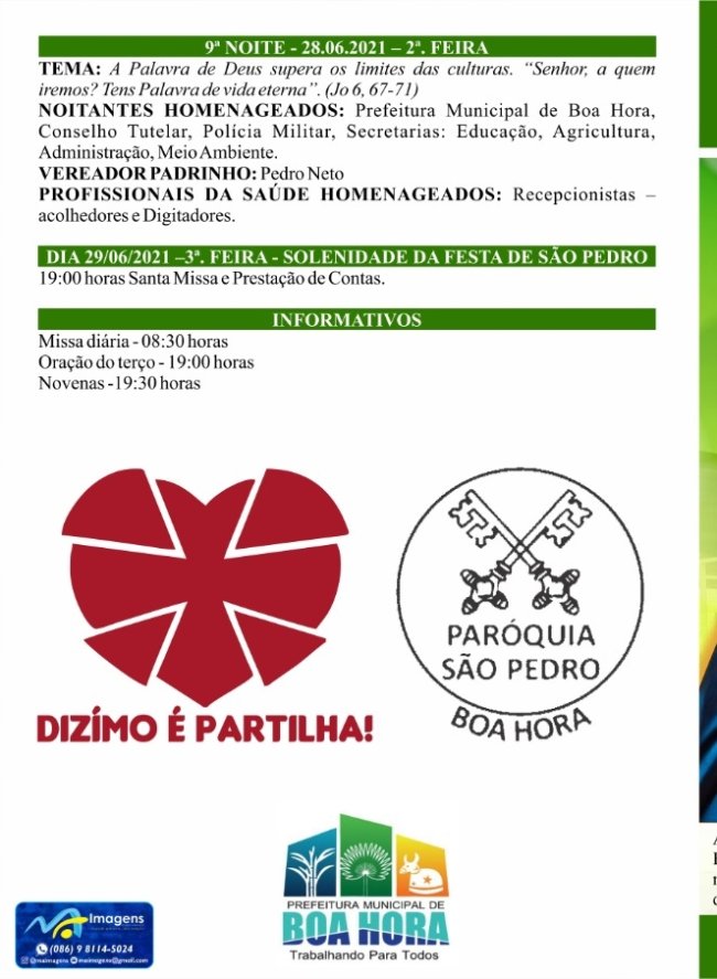 Pelo segundo ano consecutivo, os festejos do Padroeiro de Boa Hora, São Pedro, acontece de maneira restritiva, seguindo medidas contra a disseminação da covid-19.