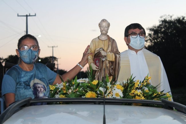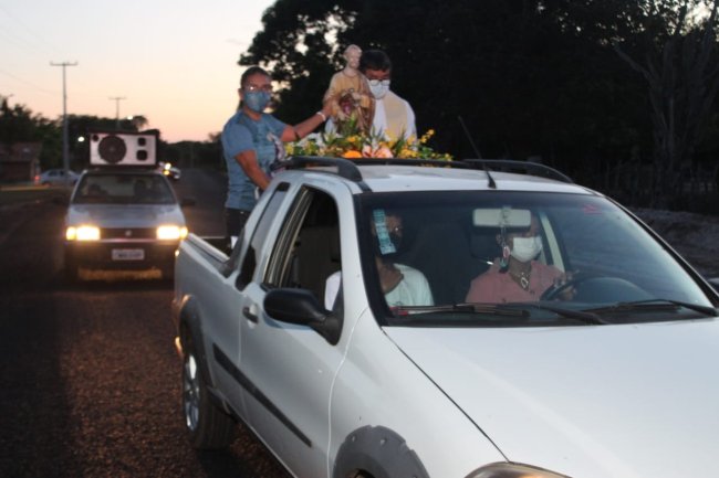 A procissão aconteceu apenas com veículos para evitar aglomeração de pessoas.