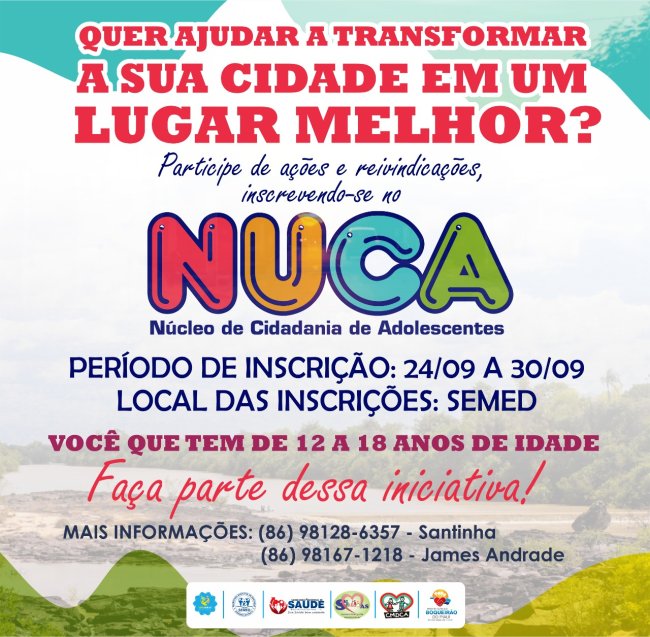 A Prefeitura de Boqueirão do Piauí por meio da Secretaria Municipal de Educação abriu inscrições para o Núcleo de Crianças e Adolescentes - NUCA.