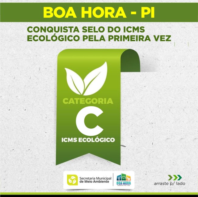 O município de Boa Hora conquistou pela primeira vez o Selo do ICMS Ecológico, categoria C. o município