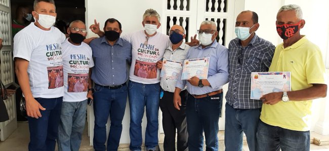 A entrega dos certificados para Ambrósio de Carvalho Sousa (Mestre Ambrósio / Sanfoneiro), José Gomes de Resende (Zé Messias / Mandador) e Raimundo Nonato de Oliveira (Raimundo Careta / Careta de Reisado) aconteceu na manhã desta sexta-feira (05) em cerimonia do Palacio de Karnak.