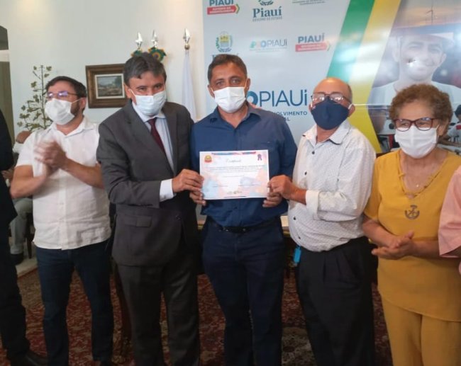 O prefeito Francieudo Canuto entregou ao lado do governador Welington Dias o certificado de patrimônio vivo da cultura do Piauí para três trabalhadores do reisado de Boa Hora premiados após indicação da Fundação Pedro Coelho de Resende.