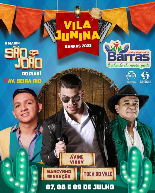 O prefeito de Barras, Edilson Capote, anunciou nesta segunda-feira (13) as atrações do Festival Vila Junina, que acontecerá na Avenida Beira Rio no início de julho.