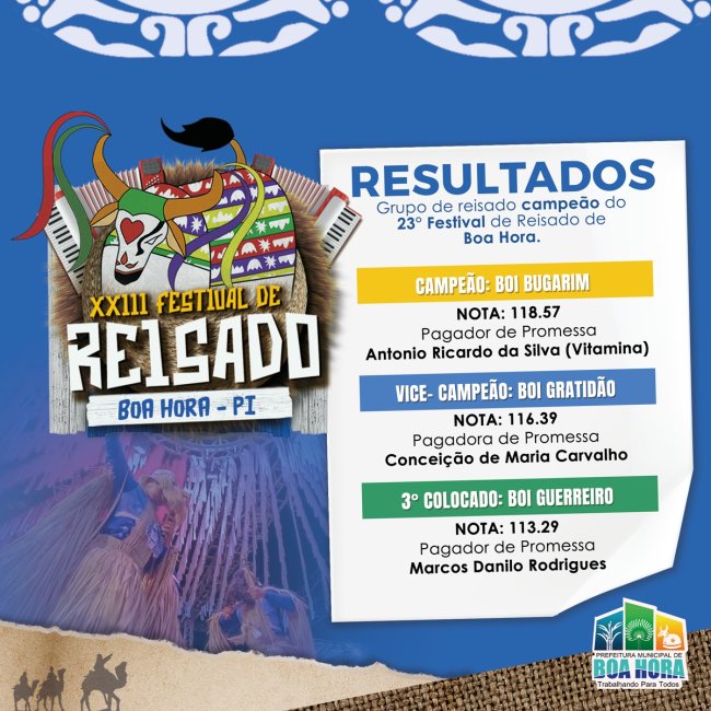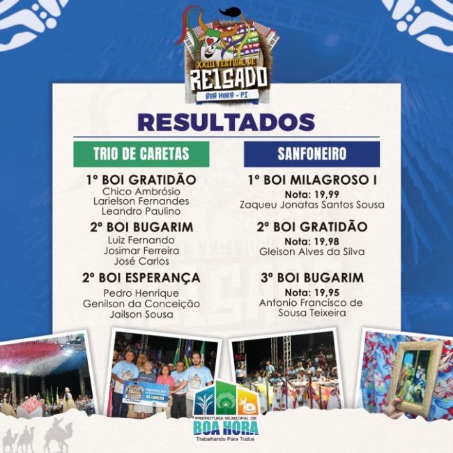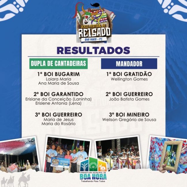 Confira o resultado dos vencedores do XXIII Festival de Reisado de Boa Hora