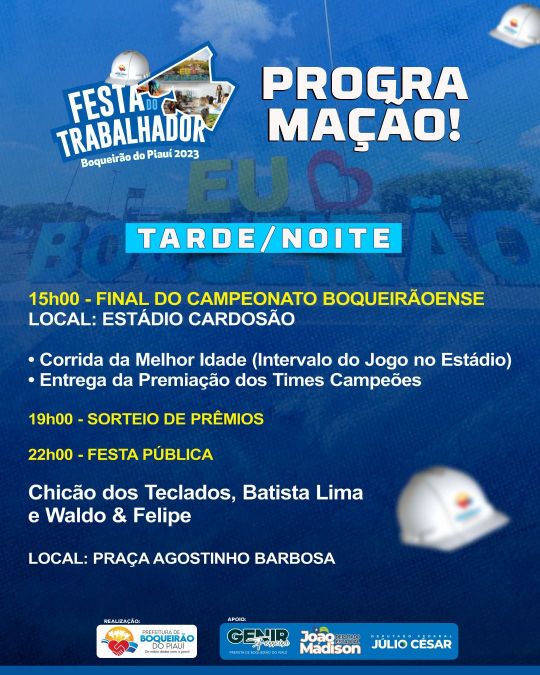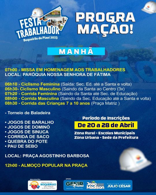 A Prefeitura de Boqueirão do Piauí divulgou a programação comemorativas ao dia do trabalhador no município.