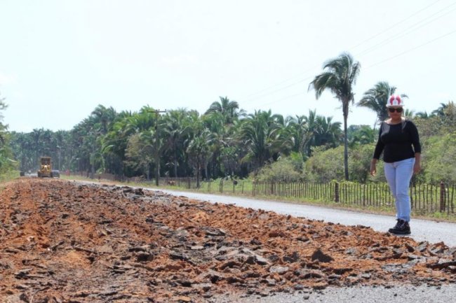 A prefeita de Boqueirão do Piauí Genir Ferreira visitou o início das obras de recuperação da PI 331, rodovia estadual que liga o município à BR 343.