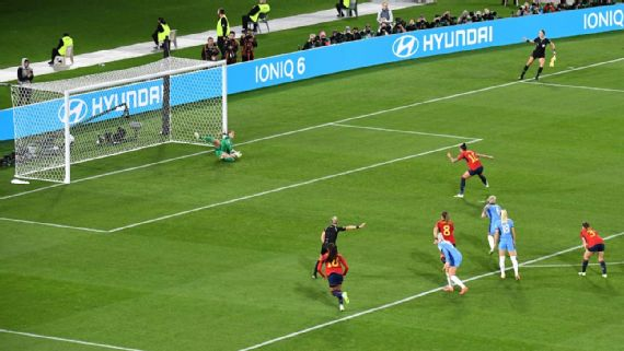 Aos 23, a Espanha teve chance de ouro para ampliar, depois que a volante Keira Walsh se descuidou da marcação e esbarrou com a mão na bola dentro da área.