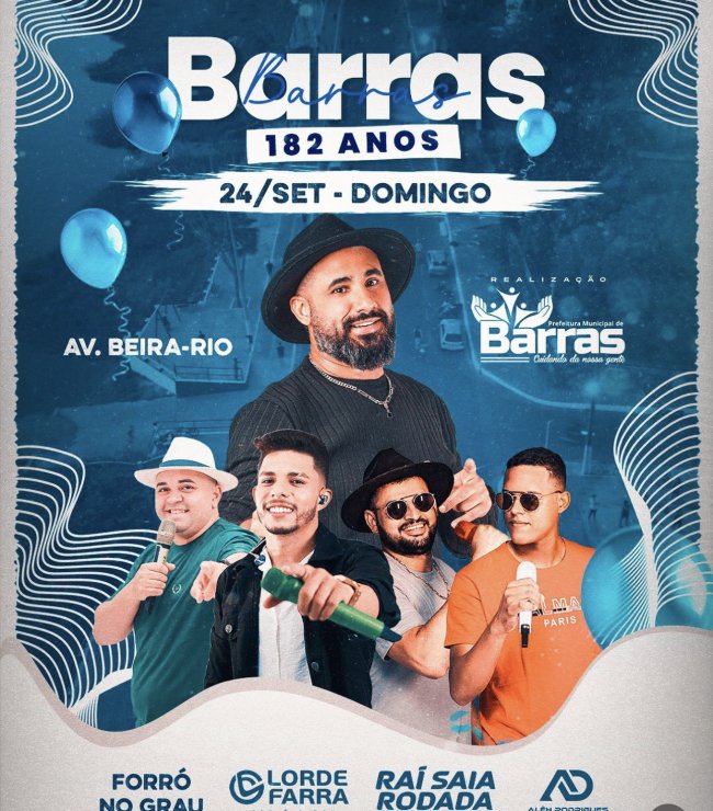 Para comemorar, a Prefeitura de Barras divulgou uma grande programação que contempla inaugurações, anuncio de obras e festa na Avenida Beira Rio.