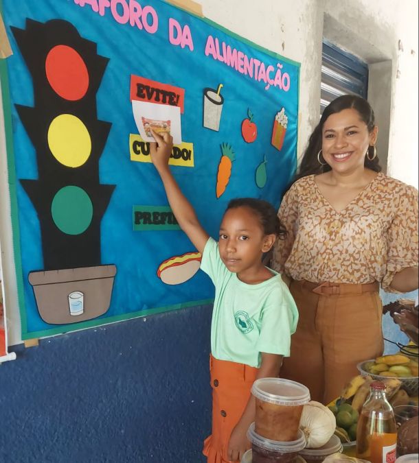 Na escola Joana Bandeira na comunidade Faveira nutricionista e vigilância sanitária destacaram a importância da construção de uma alimentação saudável com produtos da terra.