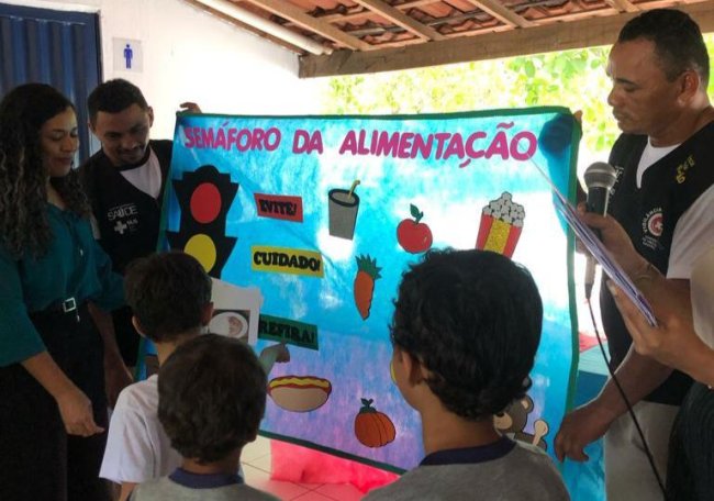 Na escola municipal Justino Carvalho na comunidade Pau Pombos o projeto contou com o apoio da coordenação da escola, vigilância sanitária e uma nutricionista da Secretaria Municipal de Saúde.