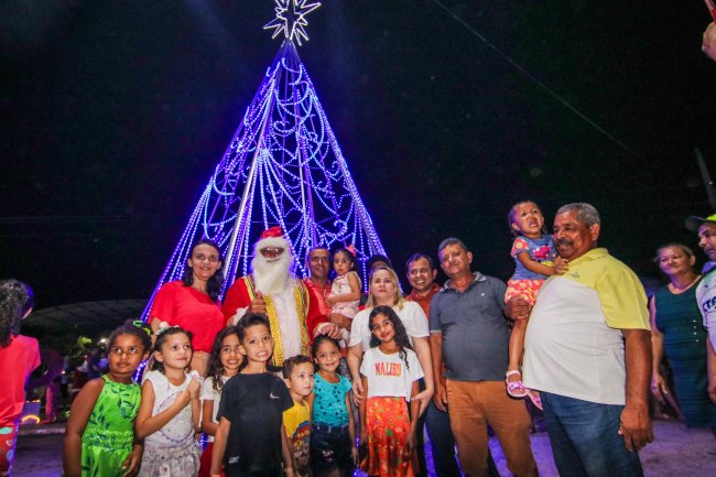 O evento iniciou com o ascender das luzes pelo vice-prefeito Chiquinho Senador juntamente com uma multidão de crianças que foram ver a chegada do Papai Noel.