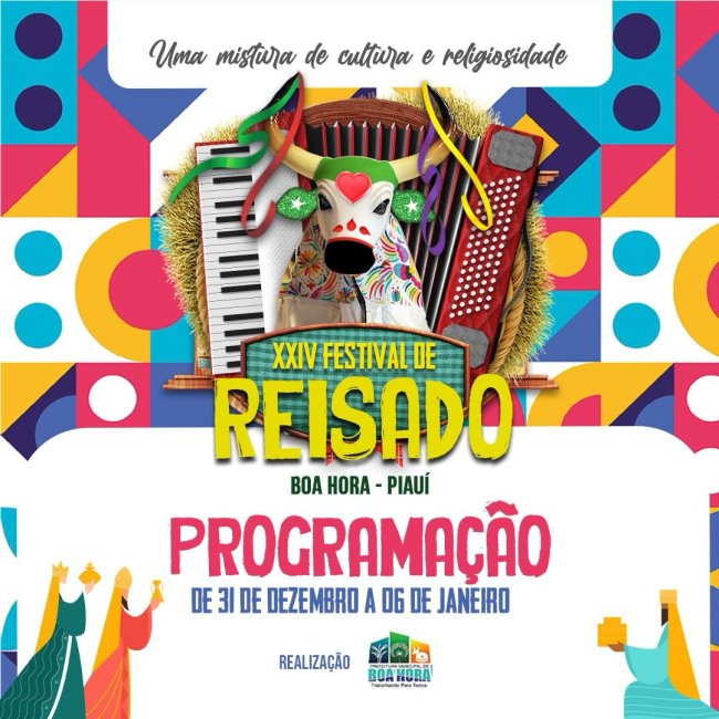Com o Tema: “Uma mistura de cultura e religiosidade”, a Prefeitura de Boa Hora divulgou a programação da 24ª edição do Festival de Reisado.