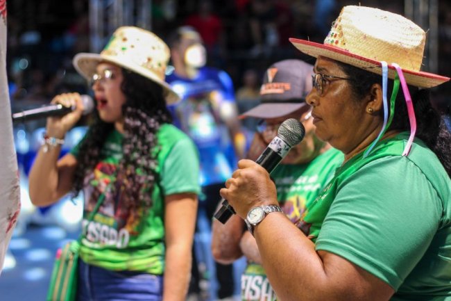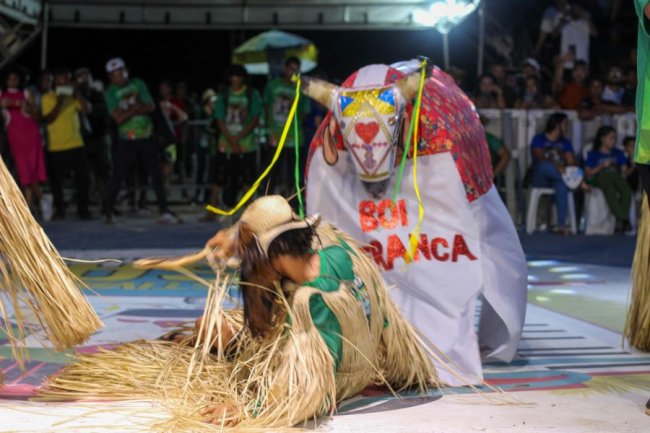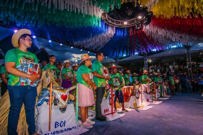 A edição de 2024 contou com a elegância e destreza de 13 grupos de reisado que desfilaram cultura e religiosidade na Arena do Boi.