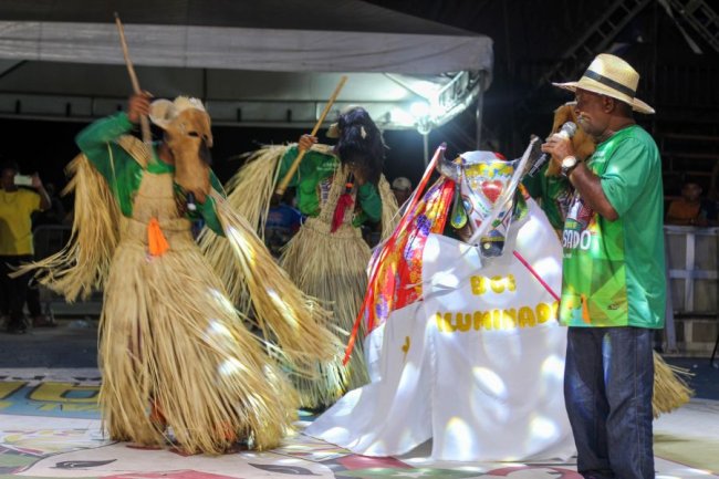O 10º grupo a se apresentar foi o Boi Iluminado do pagador de Promessa Zé Leão da localidade Pau Pombos.