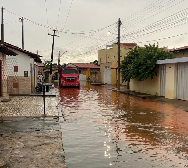 Chuva de 112 mm em 1 hora forma correnteza em ruas e arrasta veículos em Esperantina