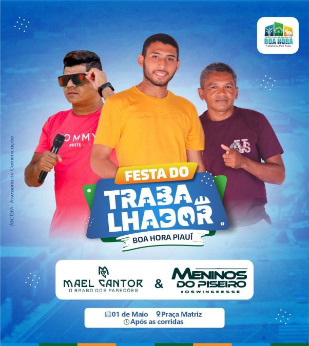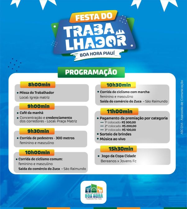 A Prefeitura de Boa Hora divulgou a programação das atividades comemorativas ao dia do trabalhador no município.