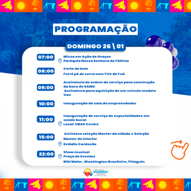 Prefeitura divulga programação do aniversário de 31 anos de Boqueirão do Piauí