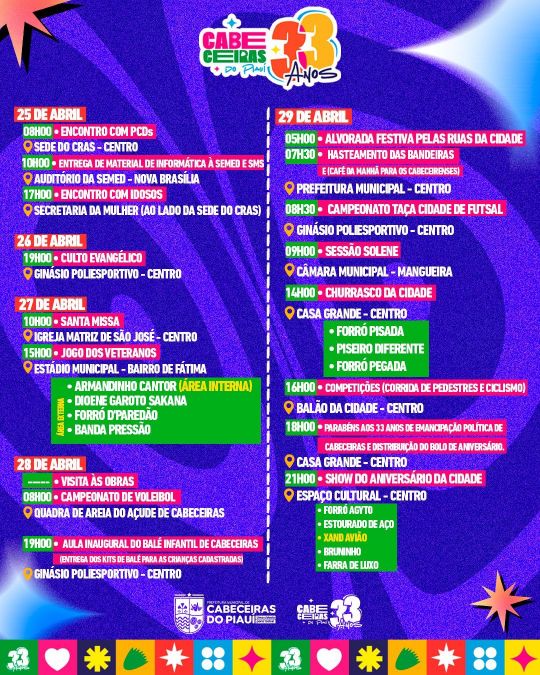 Prefeitura divulga programação do aniversário de 33 anos de Cabeceiras do Piauí