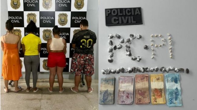 Na manhã desta quarta-feira (04), quatro pessoas identificadas pelas iniciais F.C.C.N., L.R.N.P., A.S.O.C. e A.D.A.G., foram presas por tráfico de drogas em Campo Maior, norte do Piauí.
