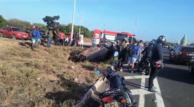 Três pessoas ficaram feridas na manhã desta terça-feira (28) após o carro em que estavam capotar na BR-316, na zona Sul de Teresina.