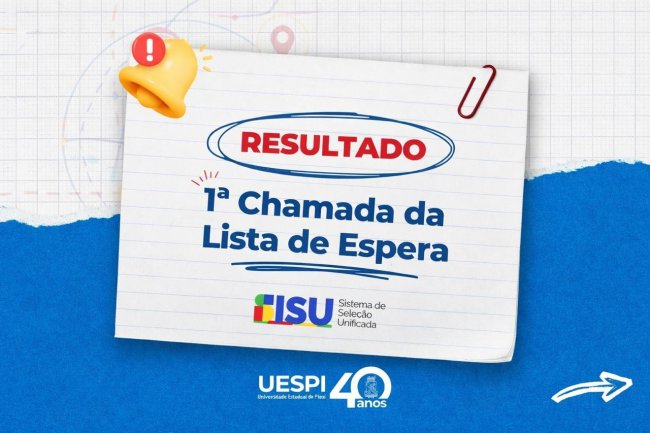 A Universidade Estadual do Piauí (Uespi) divulgou, nesta sexta-feira (13), a primeira chamada da lista de espera dos candidatos classificados no Sistema de Seleção Unificada (SiSU). Os estudantes convocados devem realizar a matrícula de forma online no período de 19 a 24 de fevereiro, por meio do Sistema da Pró-reitoria de Ensino de Graduação (Preg Uespi).